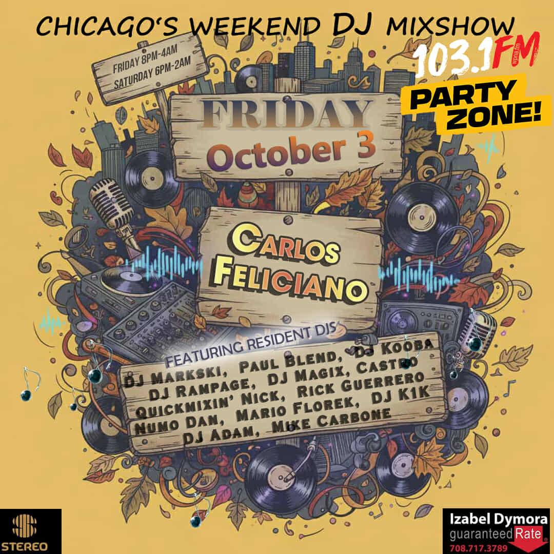 Chicago’s Weekend DJ Mix SHow NumoDan October 3, 2025 Listen Online SATURDAY OCTOBER 03, ON THE 103.1FM PARTY ZONE MIXES all night! Numo Dan @6:30pm & 1:00am https://wpna.fm